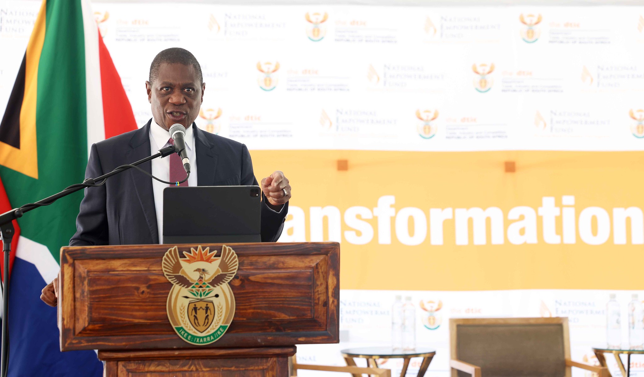 Deputy President Paul Mashatile delivers a keynote address at Business Breakfast engagement session and launch of the Transformation Fund at the Freedom Park Heritage Site and Museum in Pretoria. [Photo: GCIS]