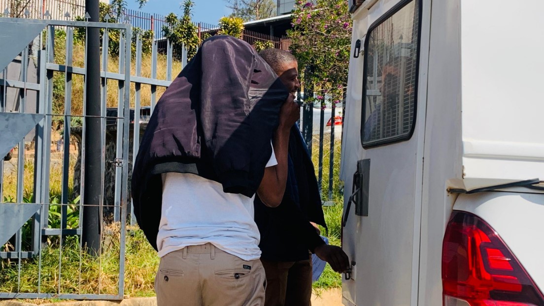 No face, just charges — Phinda Mtsetfwa, 48, hides his face with a jacket after appearing before the magistrate. He now faces two more charges, adding to a string of serious allegations, including impersonating a police officer.