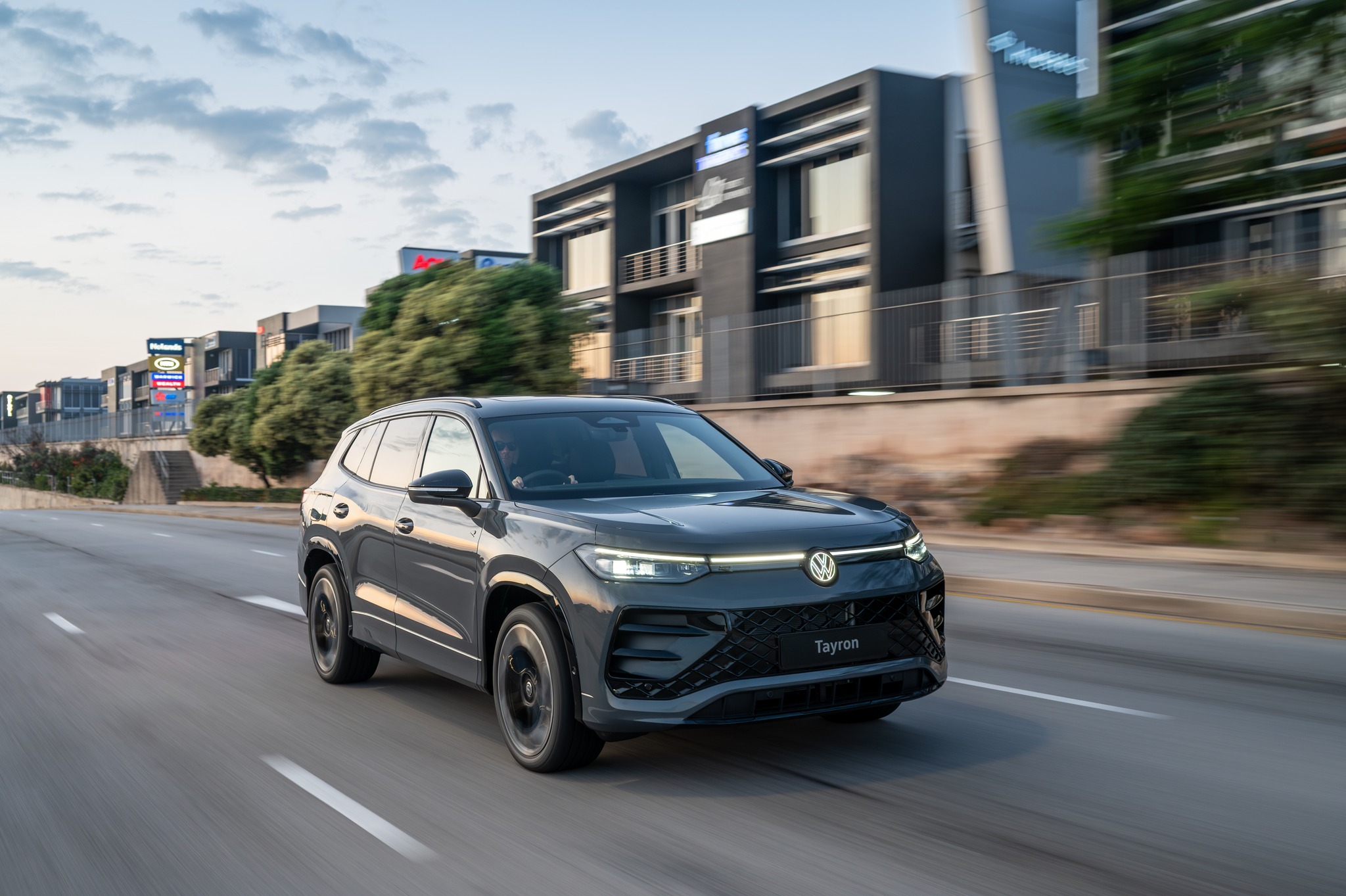 Design-wise, the Tayron closely resembles the Tiguan, featuring a horizontal LED daytime running light strip across the headlamps and a horizontal rear light bar. IQ. Light HD Matrix headlights are available as a paid extra, adapting to oncoming traffic to avoid dazzling other drivers.