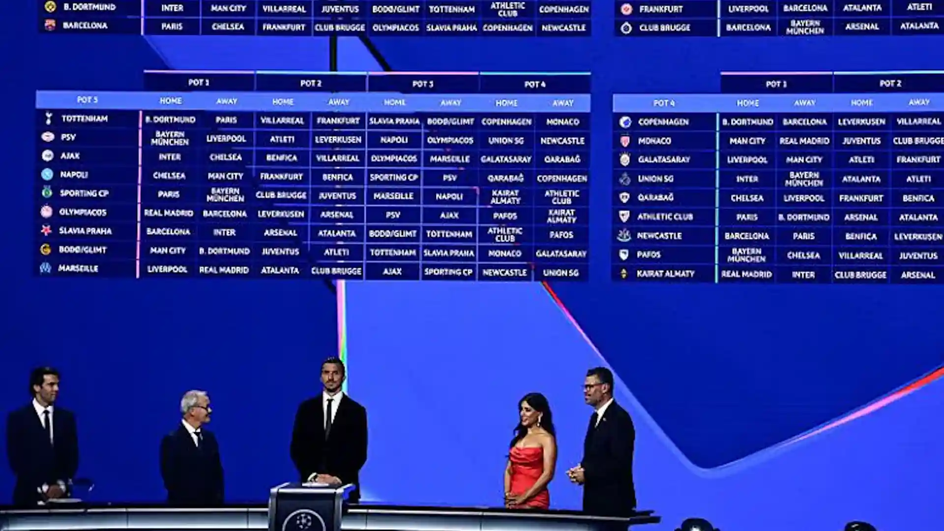 Manchester City drew Napoli, sending former favourite Kevin De Bruyne back to the Etihad with his new club. The English side also travels to Norway to face Bodo/Glimt, one of four newcomers in the expanded 36 team league phase alongside Kairat Almaty, Pafos and Union Saint Gilloise.