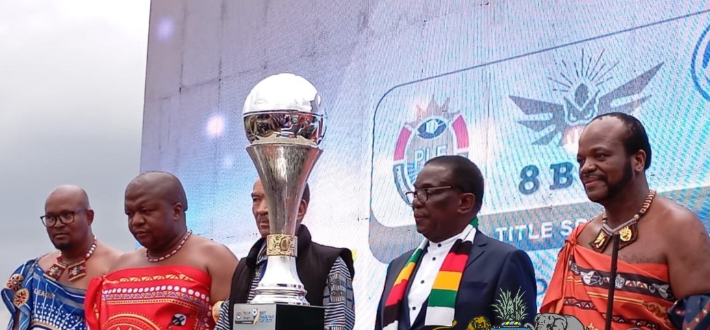 Manzini – The Premier League of Eswatini (PLE) presented His Majesty King Mswati III with the new 8Bet Trade Fair Cup trophy during the official opening of the Eswatini International Trade Fair at Mavuso Sports Centre.