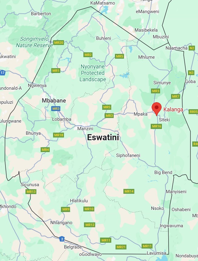 A map of Eswatini showing kaLanga location. Photo, Google Maps