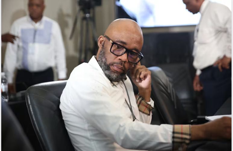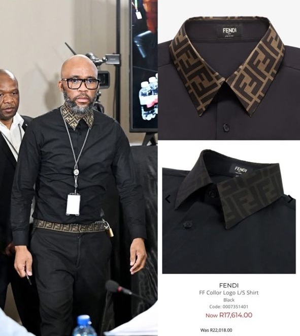 The Thursday’s all-black fit before the Parlimantary Ad Hoc Committee at Kgosi Mampuru Correctional Centre is a complete shift from yesterday’s white shit. The FF design on the collar and inside the pockets of the trousers is an unmistakable nod to Fendi, the Italian luxury house known for making subtle detailing look. And the black Fendi pricetag ranges elsewhere on sale for R17,614, marked down from R22,018. The price tag is still far beyond what most of us could ever justify spending on.