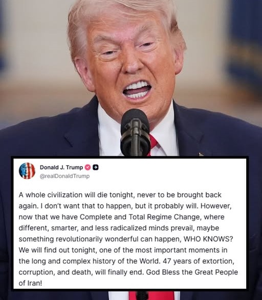 President Donald Trump warned the Iranian regime a “whole civilization will die tonight” with less than 12 hours left until a deadline he has set to reopen the Strait of Hormuz.