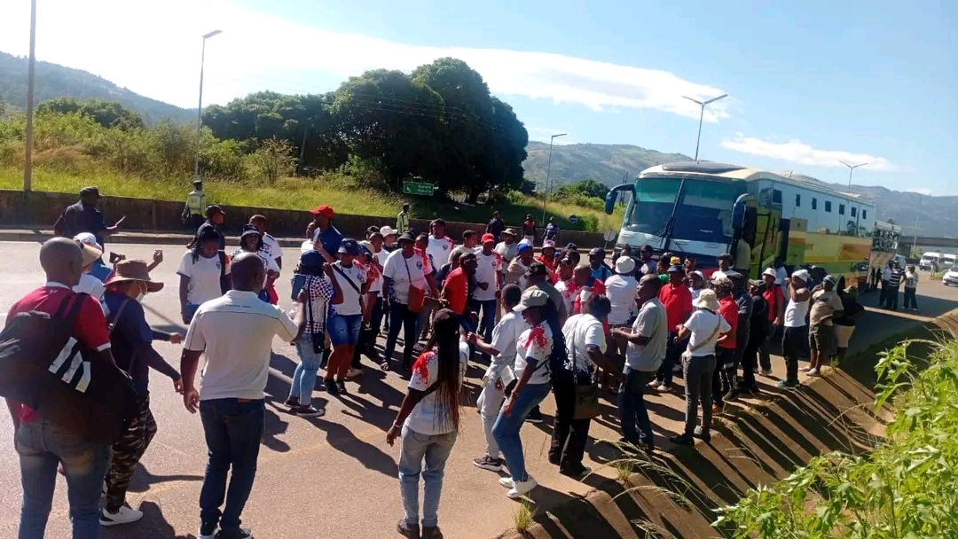 In one of the incidents, buses carrying union members were allegedly stopped and occupants dispersed before reaching their destination. Some workers later regrouped and staged a brief demonstration at Mahlanya before being moved along by security officers.